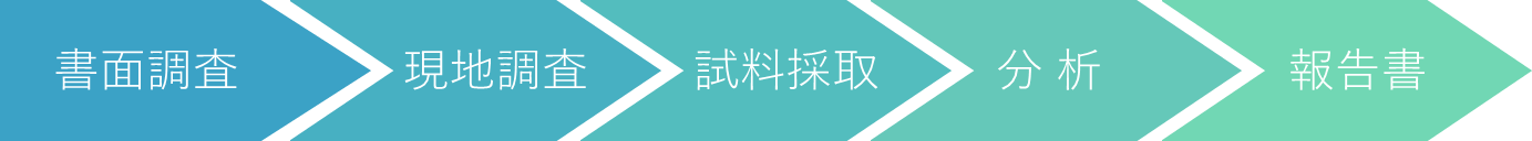 <石綿分析・調査の流れ>